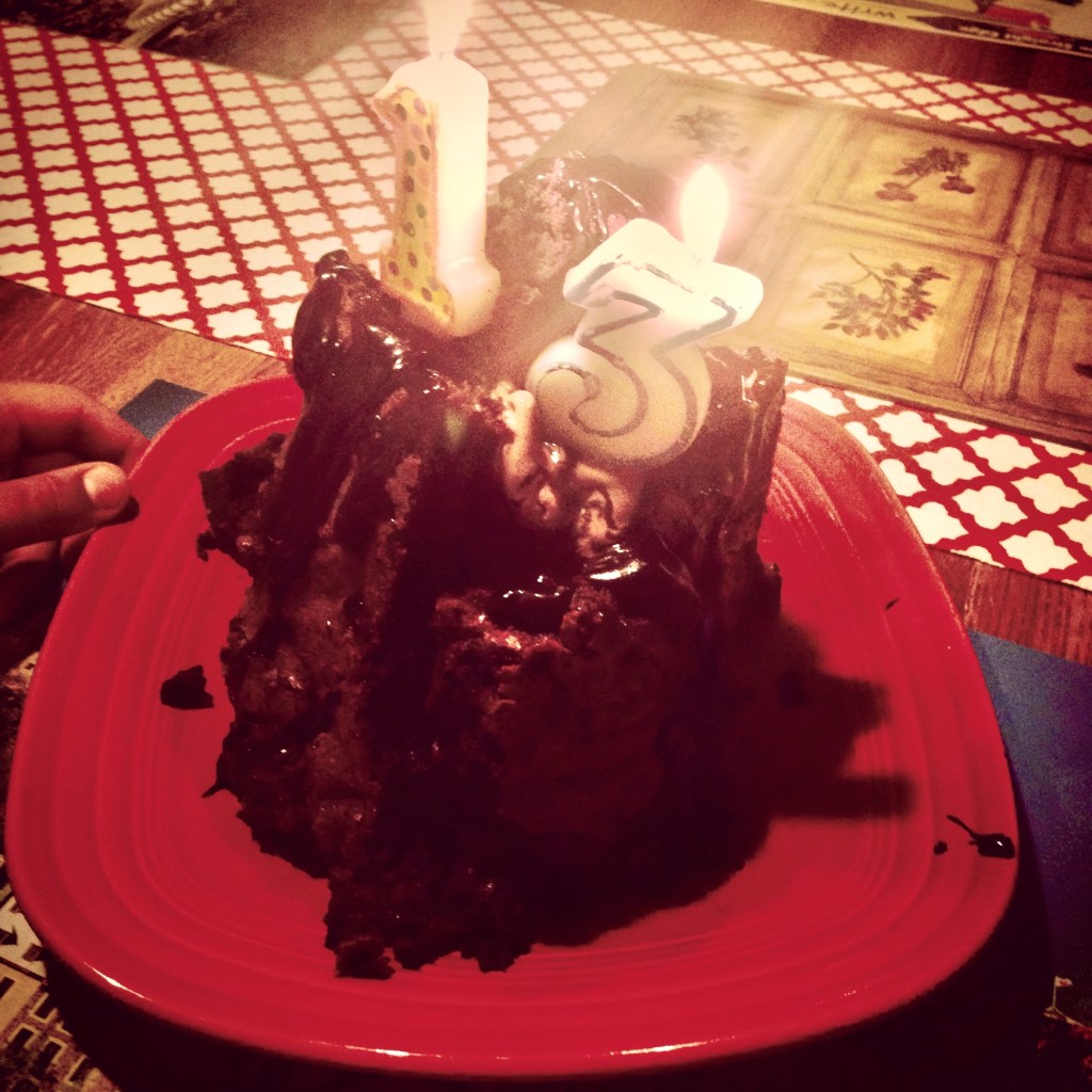 Since my hospitalization, our dear friend Gretchen had been taking our three kids out, feeding them, and even brought the twins shopping so we’d have gifts to give Casey. Gretchen also pulled together the ingredients for Casey’s favorite birthday dessert, the lava cake similar to the one The Rainforest Cafe used to serve, only much sloppier. While Gretchen had the gifts and dessert all ready for us when we got home, Scott and I ordered barbecue from the car. Casey, who’d spent his 13th birthday hanging with Gretchen’s younger son, was thrilled with his presents, with the BBQ, and with the cake, and declared it the “best birthday ever.”