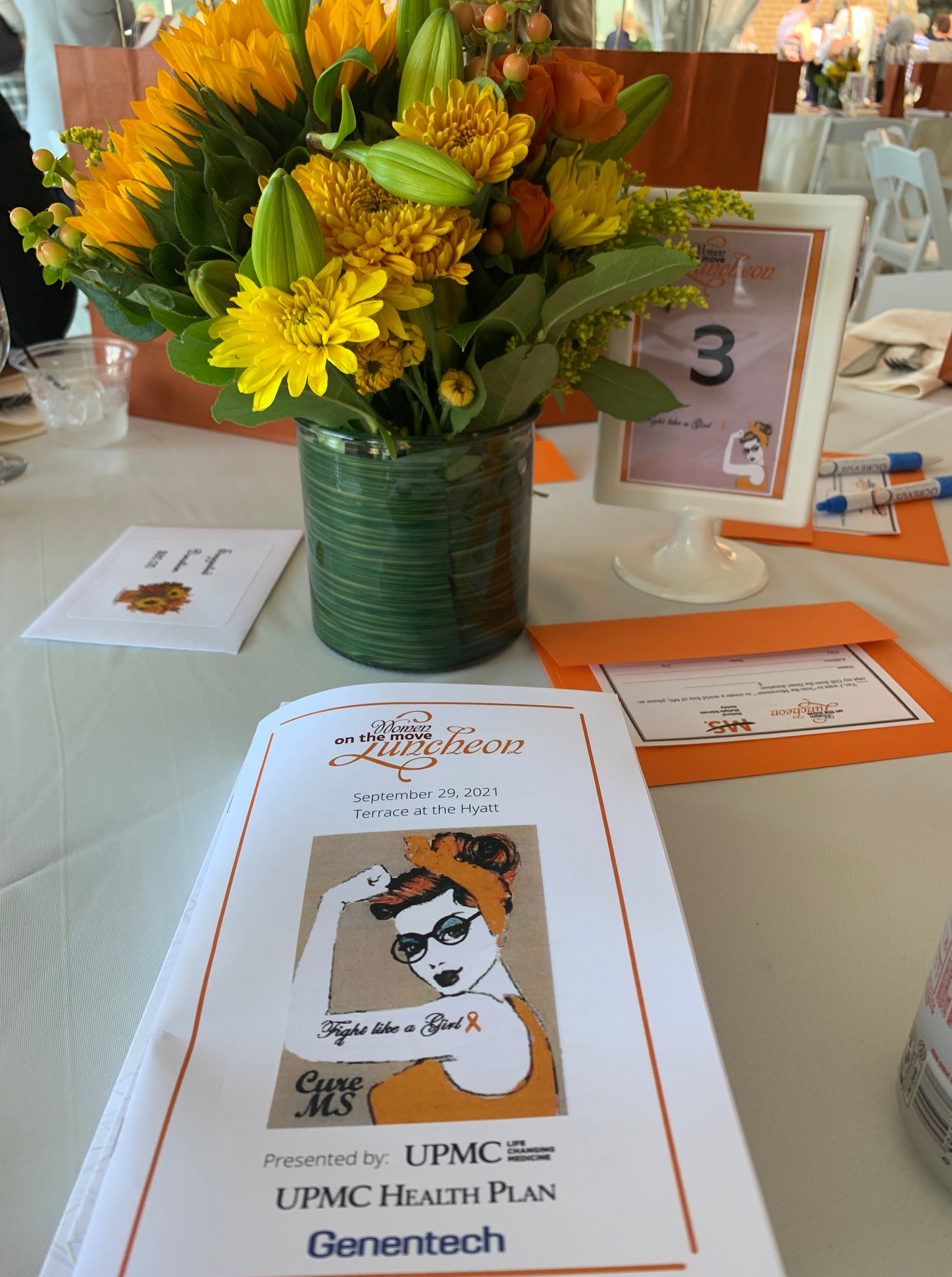Then the Pennsylvania Keystone Chapter of the National Multiple Sclerosis Society invited me to speak at their annual Woman on the Move luncheon for Sept. 29, 2021. The event would occur after we’d had our COVID vaccines. The event would be outdoors. And when not sitting at the tables or speaking at the podium, most folks would wear face masks.
